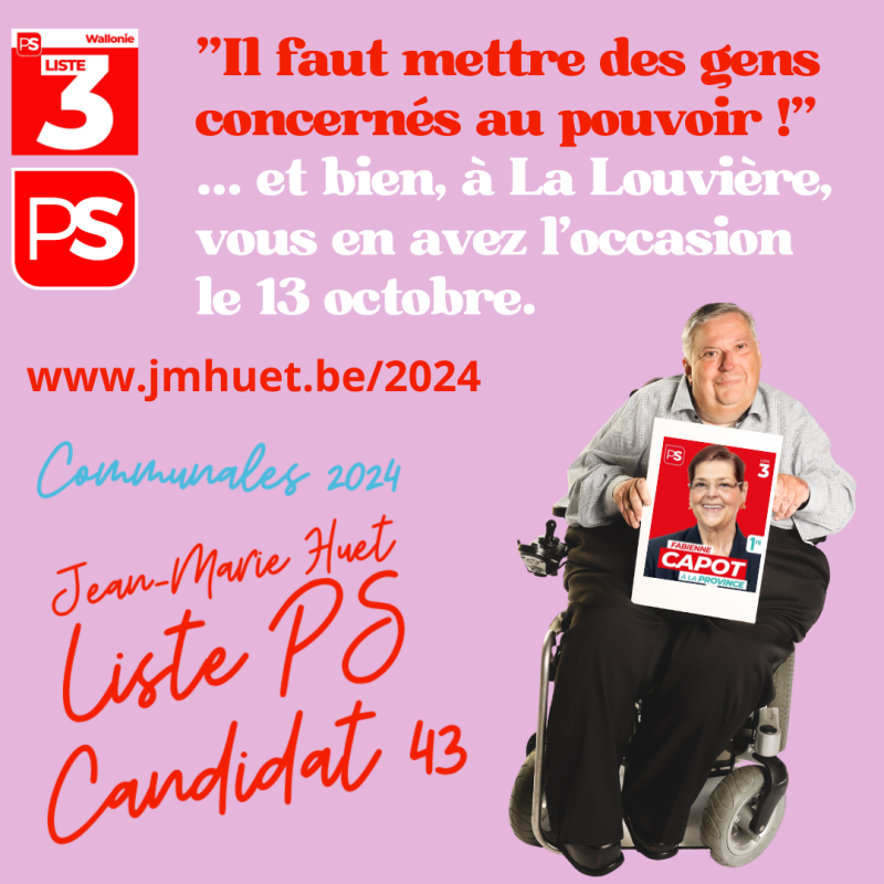 Eh ben ça alors ! Me voilà Conseiller communal dans ma bonne Ville de La Louvière ! Merci pour vos suffrages qui me vont gauche au cœur. Un grand merci au PS de La Louvière et en particulier à notre Bourgmestre Jacques Gobert qui m'a proposé la 43ème place, la tête de liste à l'envers. Félicitations à lui pour ses 4.785 voix de préférence.